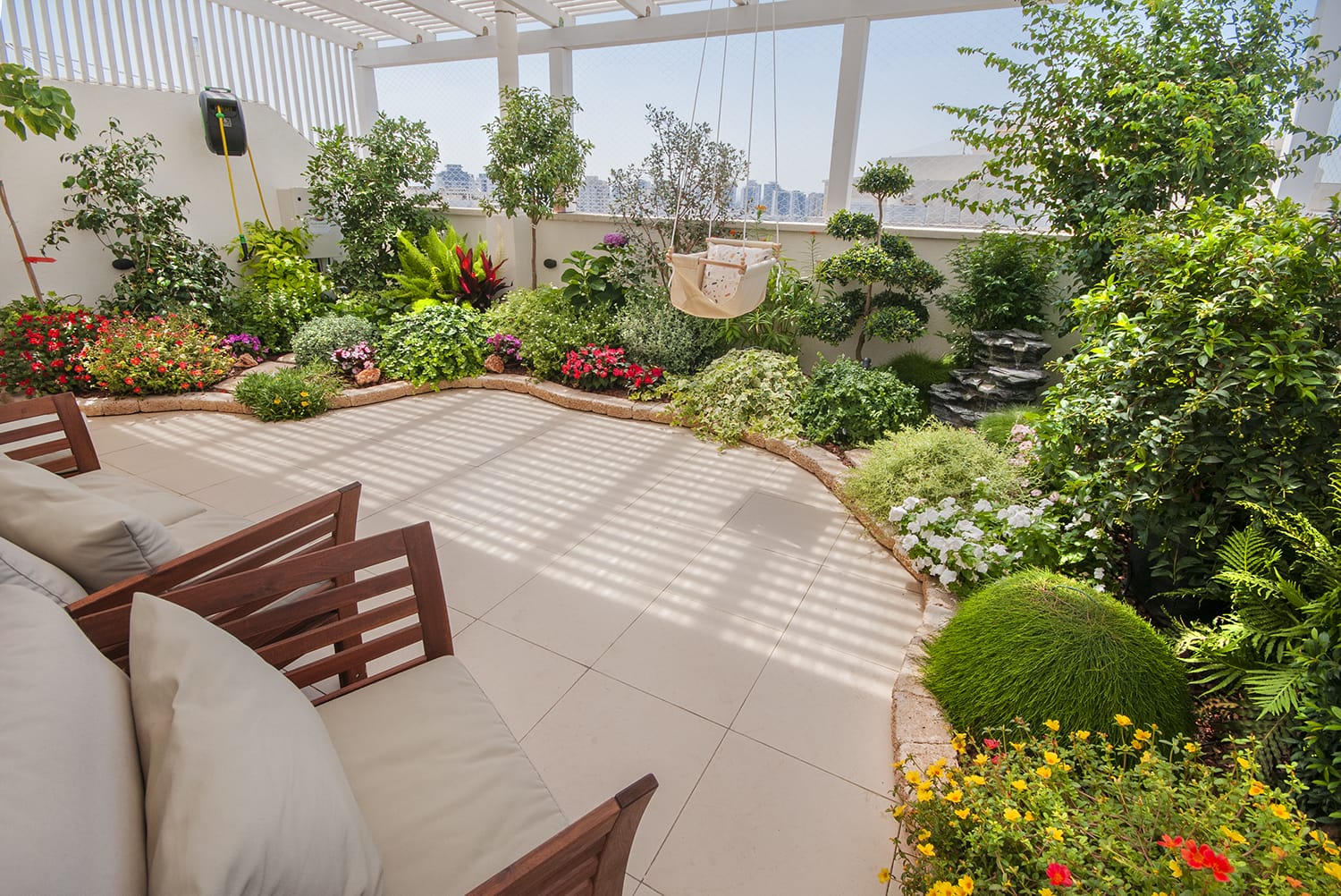 הגינה בעלת מראה של גינת קרקע והשיחים ניידים וניתנים להזזה מתי שרק מתחשק!